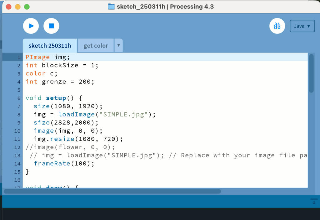 In a group project we worked on posters reflecting the presence of AI in everyday life and we created three posters that reflect on how we use AI and set ourselves the challenge: no AI allowed in the creation process. We decided to animate something using creative coding in processing (not my favorite program or tool in general) and the learning curve was steep, but I wanted to understand how much control I have when designing something from with code from scratch. I didn’t know what I was doing at first, but that was part of the fun. This didn’t work the way I wanted, so I looked for already existing code snippets and integrated (and changed) those instead.