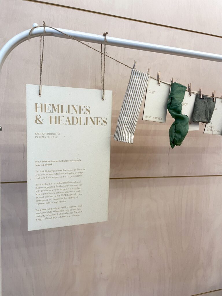 During the international design week here in Graz, I took the course data visualization. During that week, I basically collected a lot of data from vogue covers and sewed some skirts with leftover fabric from a friend (and her sewing machine). So I analyzed the average skirt length of the vogue covers for every year int he last 20 years and sewed little skirts, showcasing how the skirt length is changing. additionally, I looked at how that is correlating with the international and US Stock market and its crashes. But the longest part of this project was actually getting the data, not the sewing. But its got me thinking: there’s so much data, visualized data, but what makes it stand out, good even?