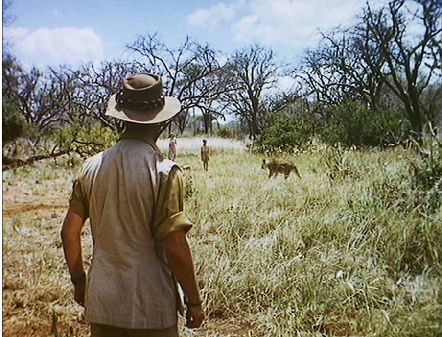 Er führt Beispiele aus Tierfilmen und Dokumentationen an. In dem Film Where No Vultures Fly gibt es eine Szene, in der ein Kind ein Löwenbaby findet, während die Löwenmutter sich nähert.