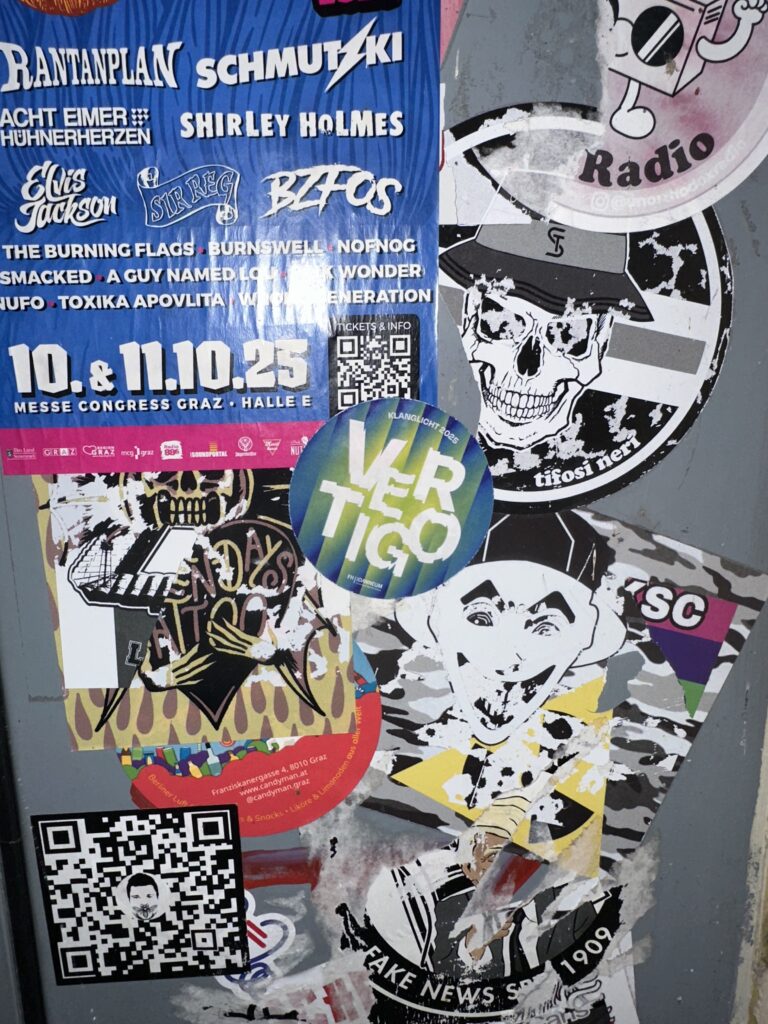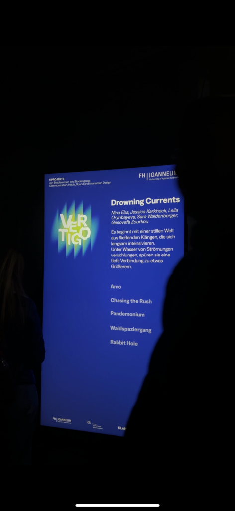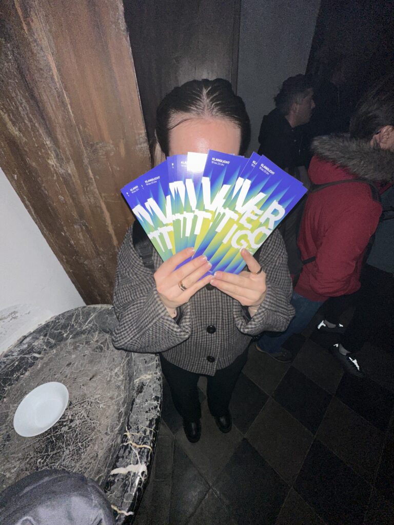 When I visited Vertigo (our FH Project as part of Klanglicht 2025), I found myself stepping away from the “spectacle” of it all. Most people were there for the visual rush, but I was more interested in how people experience it. What are their reactions? How do they engage? Do they look at the Flyers? Do they take stickers? Knowing now how much conceptual and technical planning goes into these kinds of installations, I wanted to see how it then was actually perceived.