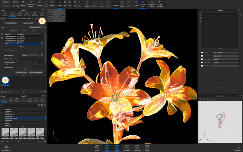 I moved the flower model into KeyShot, for its Texture, Light, and Animation where I focused on giving it a simple machine like vibe, animated the flower slowly turning, anexported the frames only, which gave me full control later in video editing.