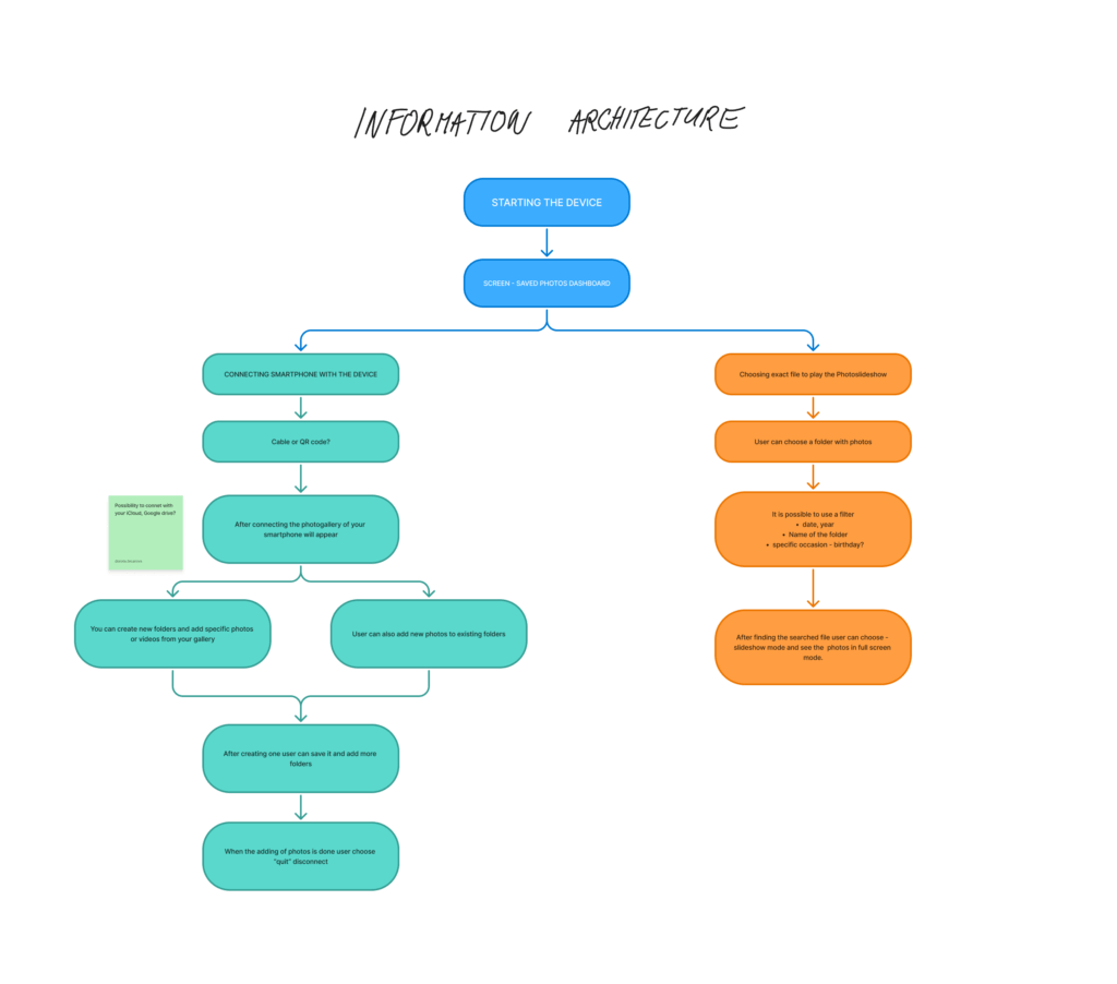 This IA was informed by insights from earlier stages, particularly the need for emotional accessibility and ease of use. People want to interact with their photos without feeling overwhelmed or lost in complicated interfaces. The flow reflects that: itâs linear, visual, and customizable.
