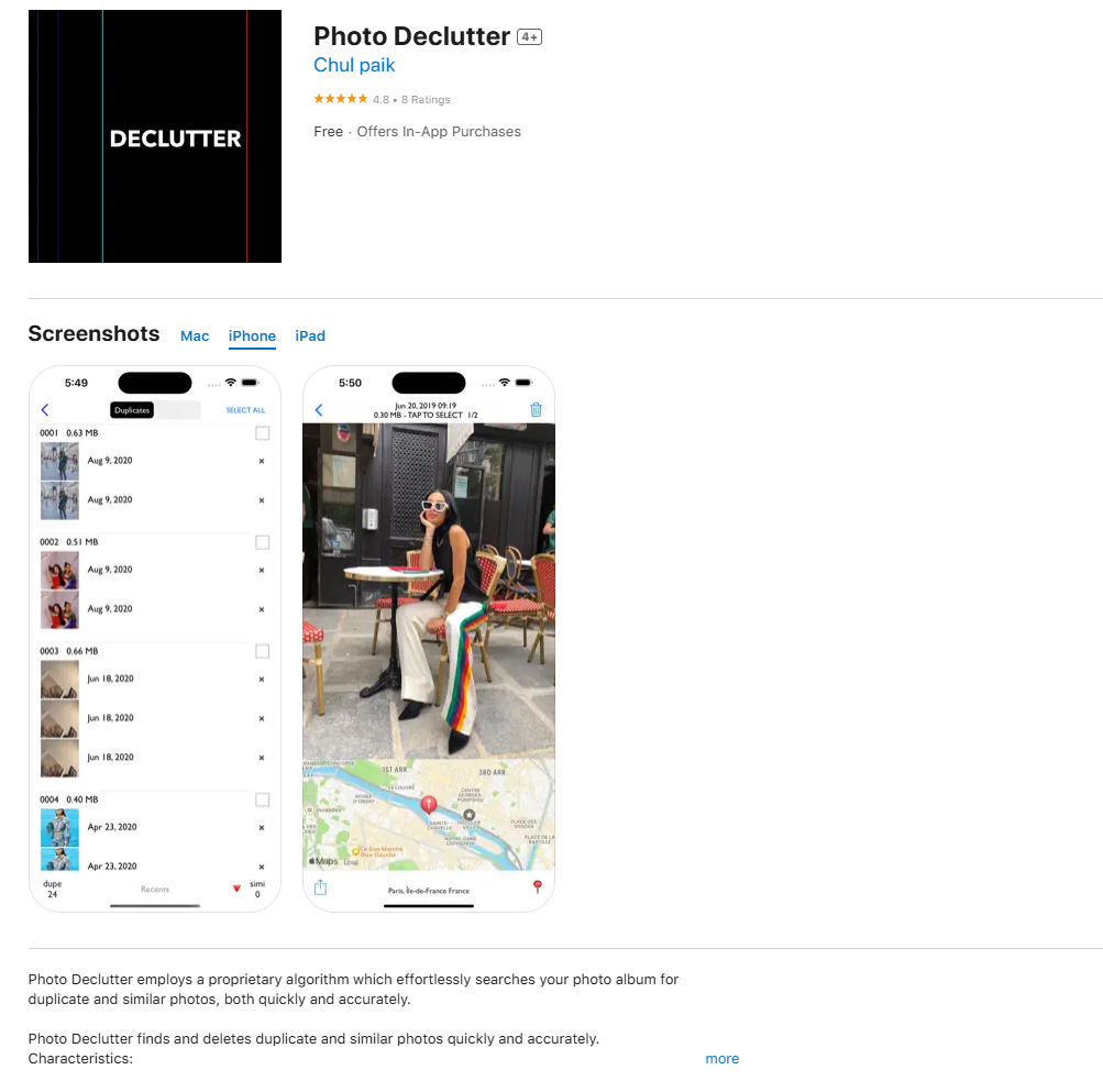 Most of the apps prioritize speed and simplicity, often at the expense of emotional context. Only Swipe Delete includes a moment to pause and reflect after mass deletions. On the other hand, Photo Declutter uses AI to identify duplicate photos, which feels less emotionally risky. You are not deciding whether a photo has meaning, just whether it’s a copy. Its interface is clean and easy to understand, making it feel approachable for more cautious users.