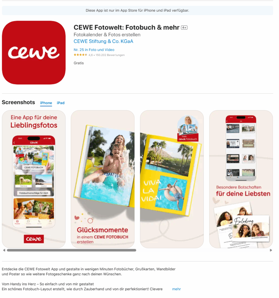 The Cewe company also created an App where you can design your photobook layout and then print it.