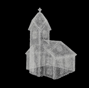Die Fotos wurden anschließend in Polycam hochgeladen und mithilfe des Photogrammetry-Modus verarbeitet. Das daraus generierte 3D-Modell – im GLB Format – lieferte überraschend gute Ergebnisse und bildete die Struktur der Kirche erstaunlich detailreich ab.