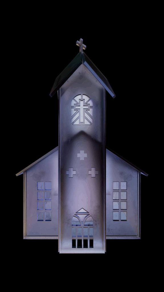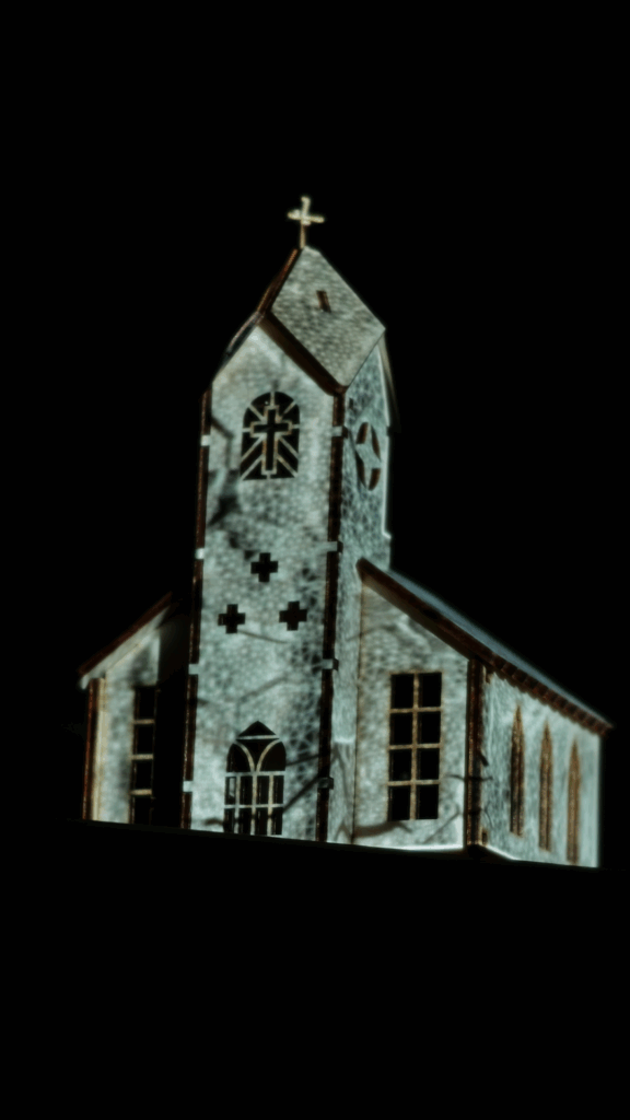 Nach einer kreativen Pause fiel es mir zunächst schwer, wieder in mein Mapping-Projekt einzutauchen. Die ursprüngliche Idee – ein Modell einer Kirche als Projektionsfläche für ein Videomapping zu verwenden – fühlte sich plötzlich nicht mehr stimmig an. Ich stellte infrage, ob die stark vereinfachte Form dieses Modells überhaupt das Potenzial für ein visuell ansprechendes Ergebnis bietet. Die Architektur schien mir zu reduziert, zu geometrisch starr, um die emotionale und atmosphärische Tiefe zu erzeugen, die ich anstrebe.