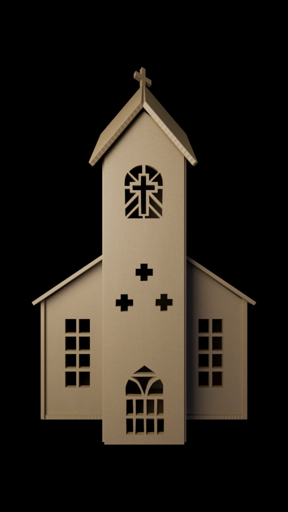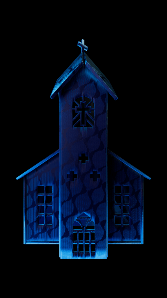 Ich entwickelte ein einfaches Testkonzept, bei dem die Kirchenminiatur in Cinema 4D mit unterschiedlichen “Mood-skins” versehen wurde – eine Mischung aus prozeduralen Shadern und Material-Texturen, die verschiedene ästhetische Richtungen repräsentieren. Diese Kategorien reichten von:
