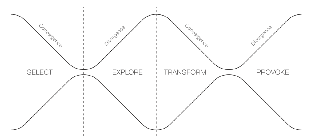 The authors identify a recurring four-phase process throughout the papers and propose an adapation of the oh-so-loved Double Diamond: the Inverted Double-Diamond Framework with the phases select, explore, transform, and provoke.