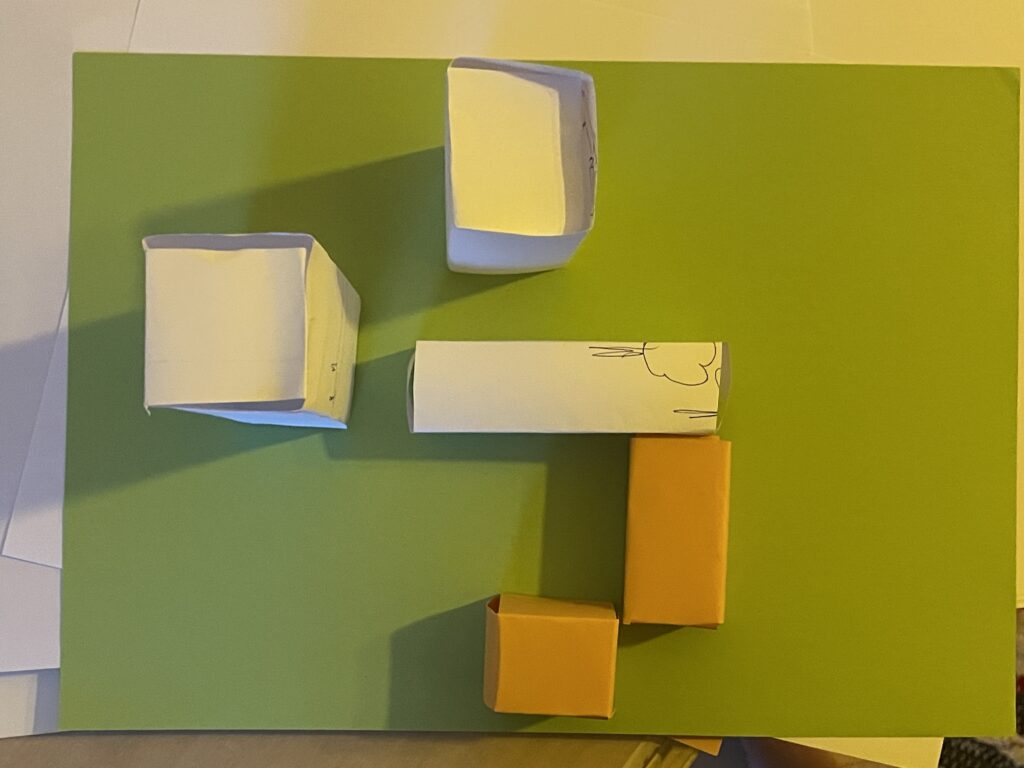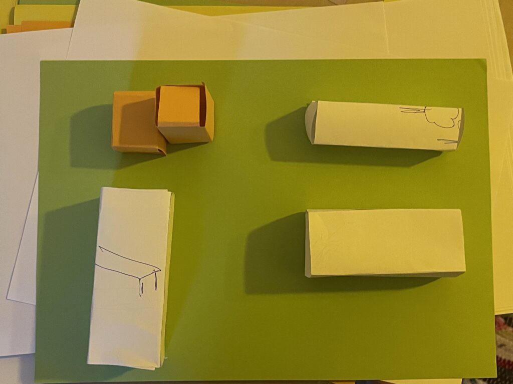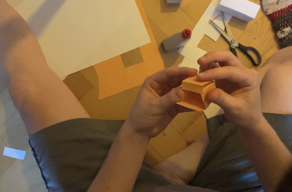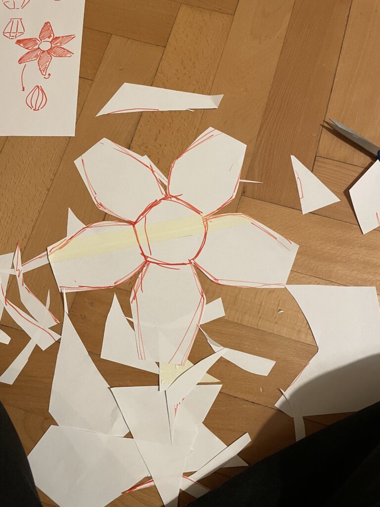 Further on I made a prototype of regular paper and tape, to try and figure out a shape that could work but also look ok.