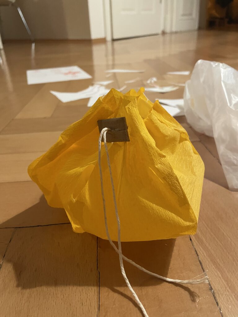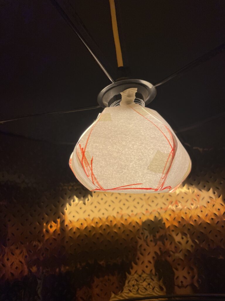 Then I finally made the final prototype, using thin silk paper, as the chinese lamps would have. This prototype ended up working pretty well, and looking decent.