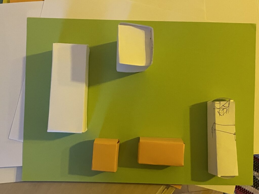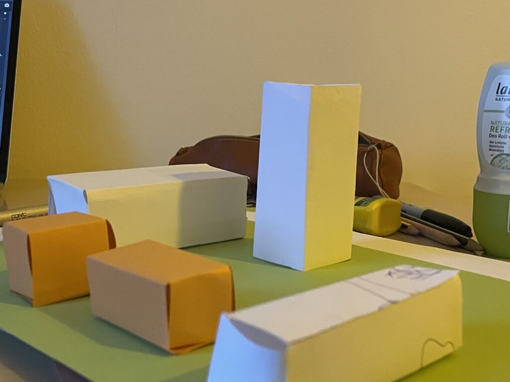 For the first prototype, the modules consist of a set of paper boxes in different shapes that represent different assets for the urban space. They can be assembled in different ways to quickly and easy test different setups for the space. The vision is that the act of planning and putting together the modules is a perfect activity for a neighbourhood community – for them to co-design, work together and therefore gain more relation and responsibility of the area (and each other!).