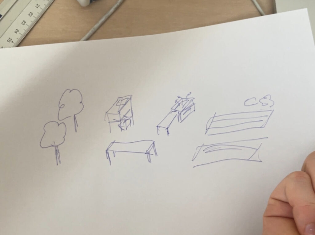 The final idea is a modular set of seating area, plant boxes, tool crates, work benches and everything else needed for the urban gardening space. In the first round, I want to make a toolkit for planning and envisioning the space – for anyone who would like to implement this. In the future, I would like to make real size modules and try them out in an actual city context.