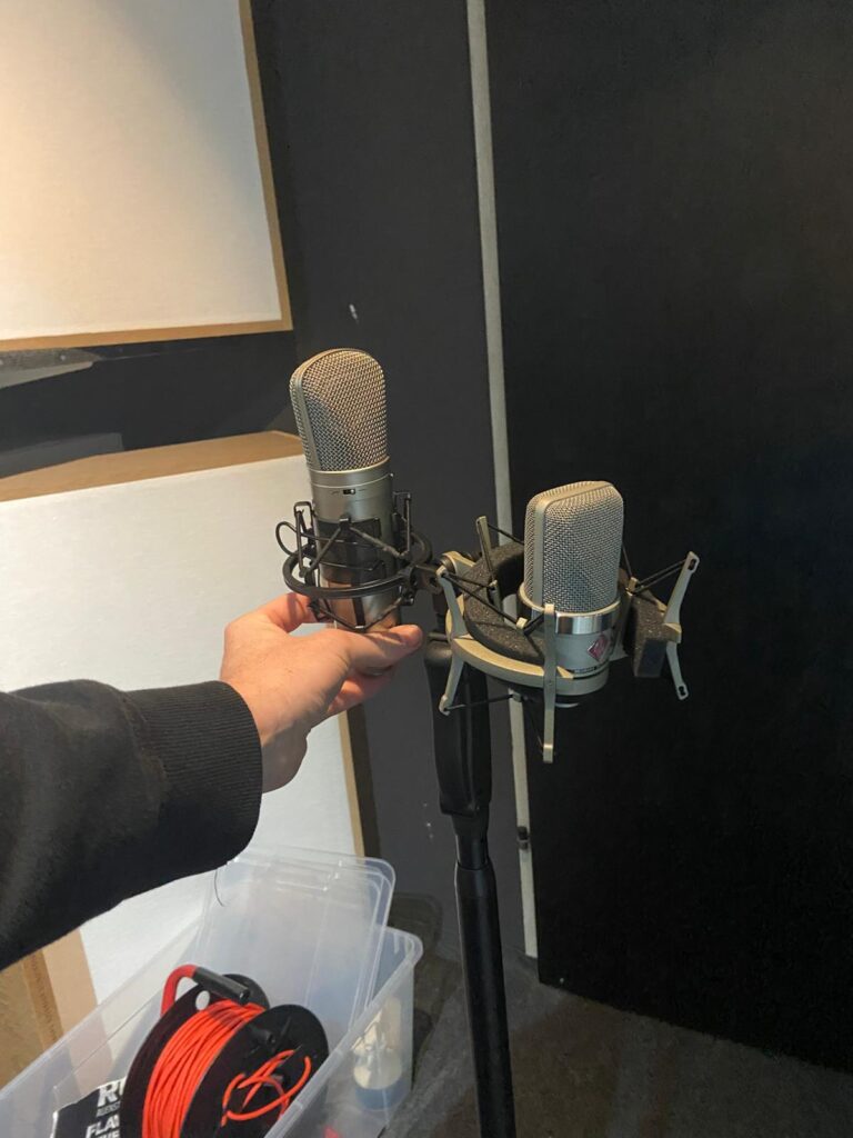 During the second recording session, a wide range of unconventional room microphone techniques were tested. For this purpose, several older Behringer B2 large-diaphragm condenser microphones were used, which I was able to borrow from a friend for the session.