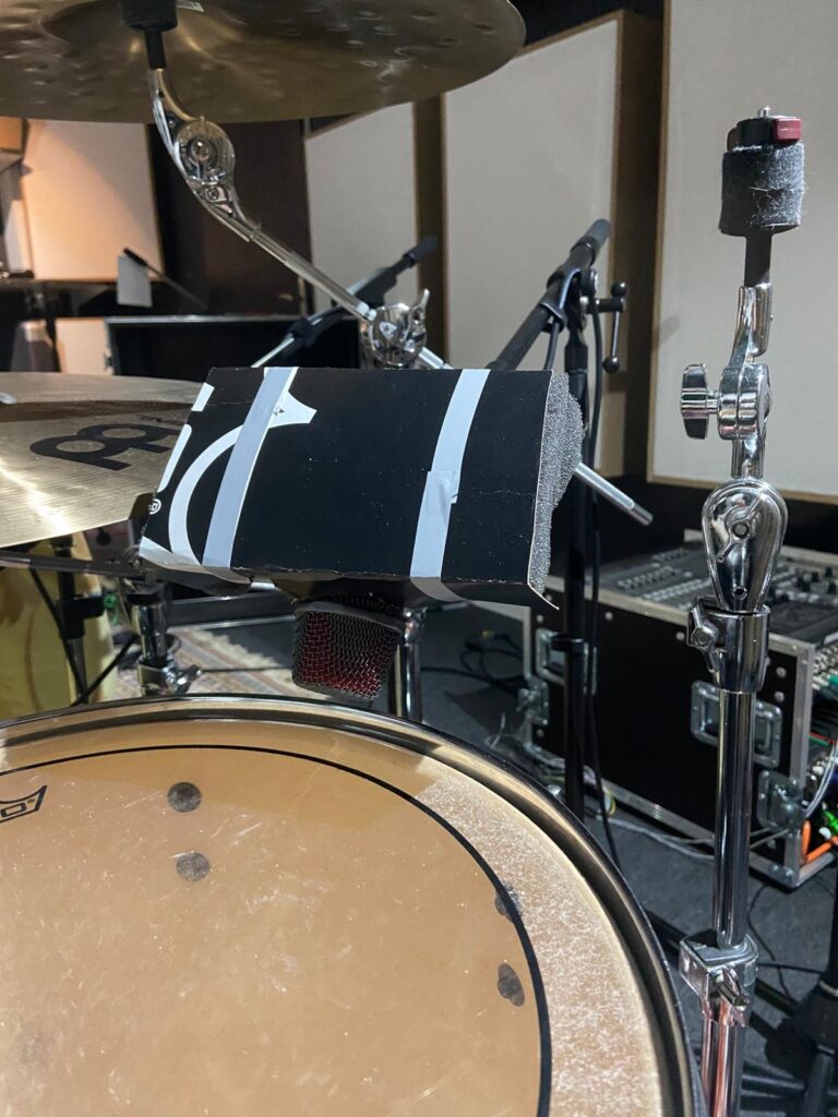 We also built temporary drum shields to reduce cymbal bleed, particularly for the snare and tom microphones.