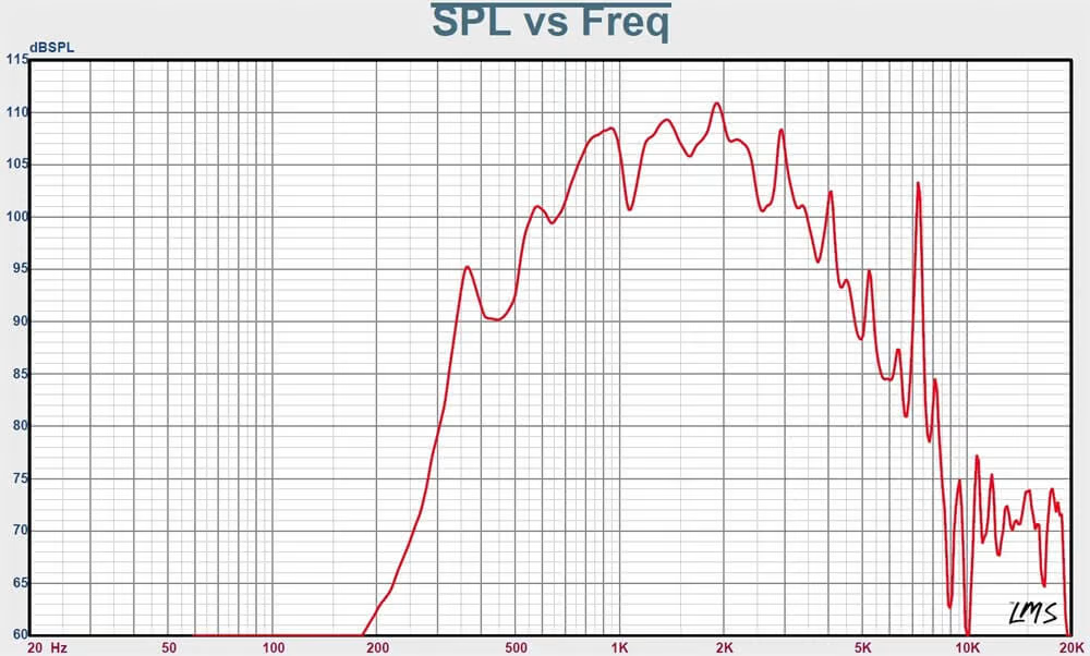 Frequency response (SPL vs. frequency) of the horn loudspeaker.