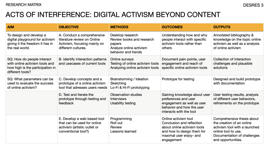 Right now, my outlook is open but focused. I know that my thesis will deal with freedom under rules and with the role design plays in shaping what is allowed, visible, or possible. This shift from form to ethics feels challenging, but also motivating. I am excited to see where these conversations will lead next — and I am genuinely stoked to continue this journey.