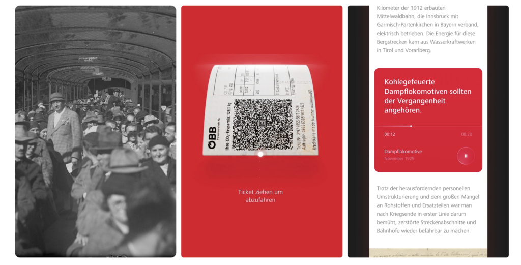 Leider ist sie aktuell nicht mehr online: https://oebb-history.at/en. Aus dem Grund hab ich dem Entwickler Team geschrieben, ob es die wieder geben wird oder ob ich anderwertig nochmal darauf zugreifen kann. Da ich schon einmal Kontakt mir der Agentur hatte, kann ich gegebenenfalls auch technisch Nachfragen, wie die Umsetzung genau gelaufen ist und wo es vielleicht Challenges bzw. Tipps für mich gab/gibt.